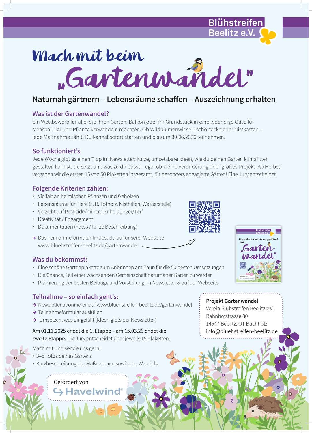 Näheres erfährt man unter bluestreifen-beelitz.de/gartenwandel/. Dort ist auch ein Teilnahmeformular erhältlich.