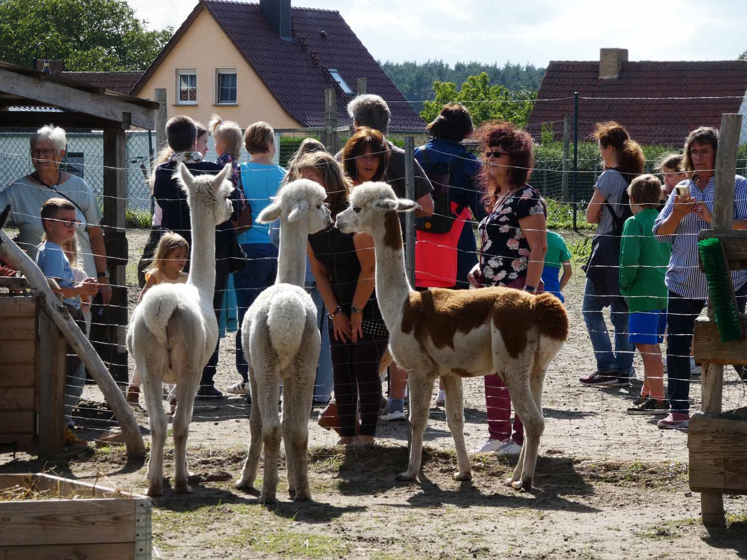 Ab 16 Uhr begann die erste Führung direkt zu den Alpakas. Die Tiere kamen neugierig näher, ganz sanft und ruhig – und der Teamchef erzählte mit viel Herzblut über ihren Charakter, ihre Herkunft und die Besonderheiten der Haltung.