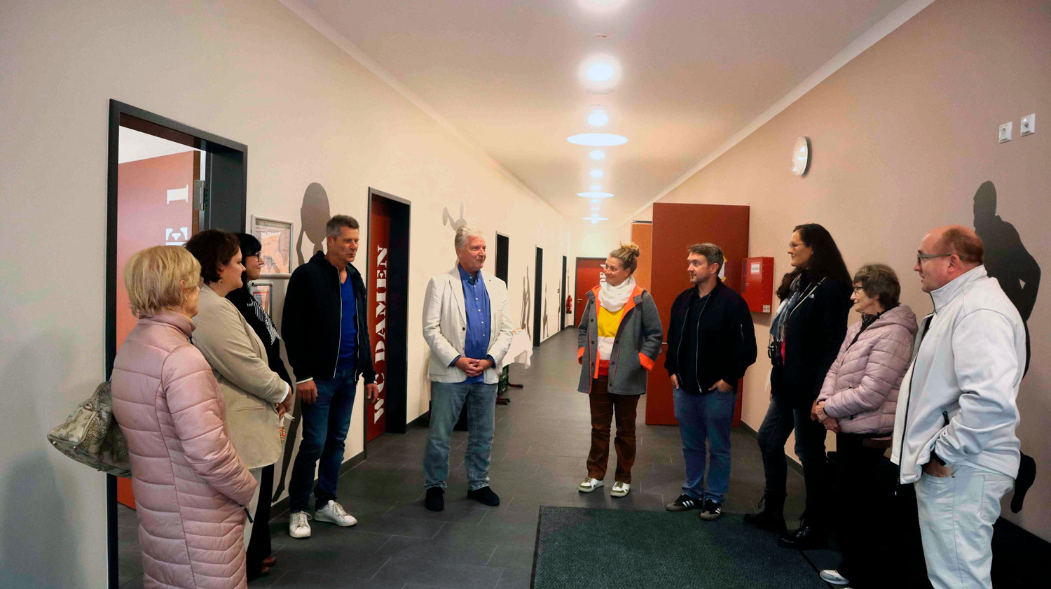 Nach einer kurzen Begrüßung durch den stellvertretenden Bürgermeister Zado und Schulleiterin Göbeler nutzten die Stadtverordneten die Gelegenheit, die Turnhalle in Augenschein zu nehmen. Ein Projekt, dessen Realisierung durch einen Beschluss der Stadtverordnetenversammlung auf den Weg gebracht wurde. Neben der Bewunderung für die moderne Bauweise wurden auch fachliche Fragen gestellt, unter anderem zur energetischen Nutzung. Hausmeister Olaf Urbanek erläuterte dabei, dass das Hallendach mit Solarzellen ausgestattet ist, die einen Teil der Stromversorgung übernehmen. Auch das Thema Barrierefreiheit wurde thematisiert und positiv hervorgehoben.