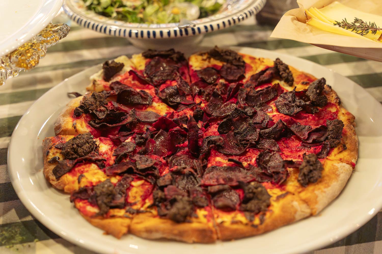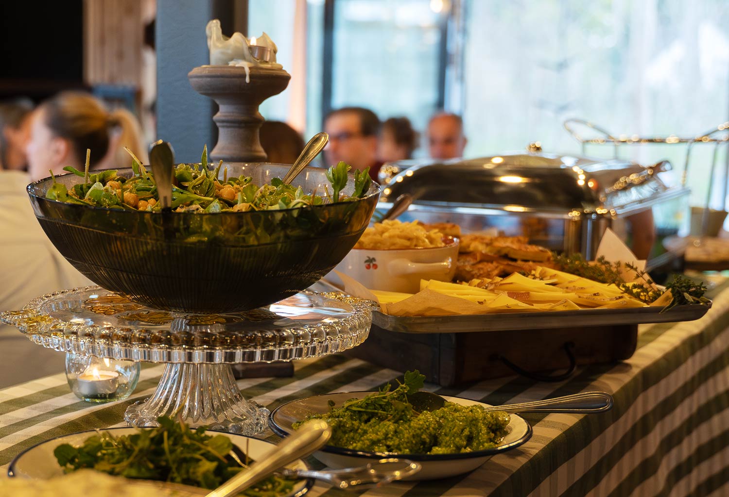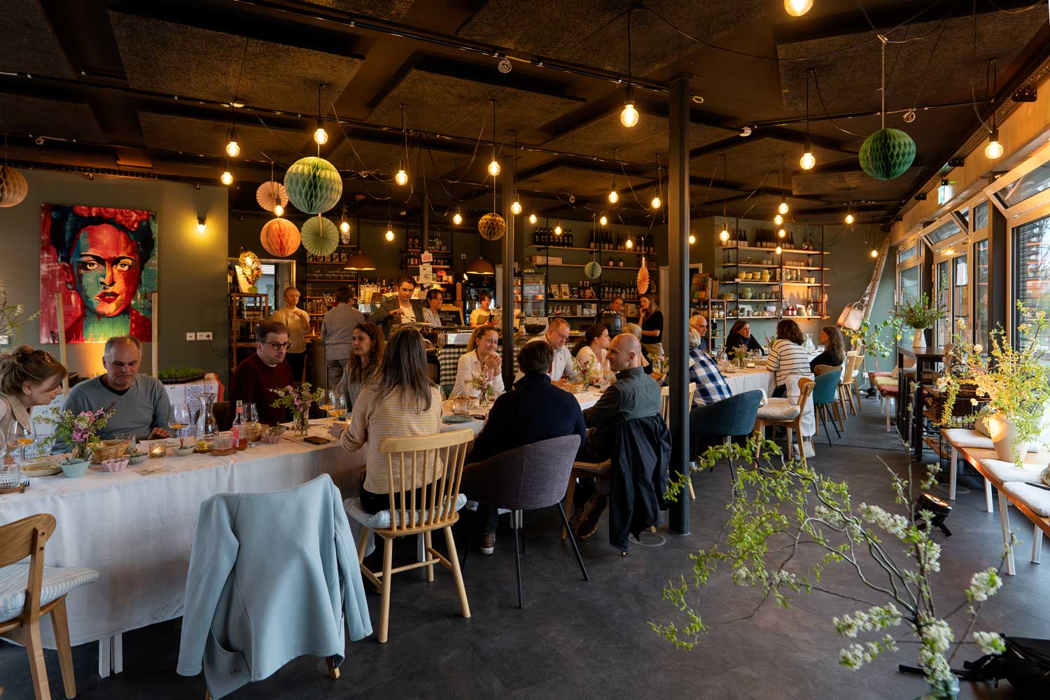 Die erste von insgesamt vier Veranstaltungen fand im beliebten Borkheider Café Waldraum statt. Selbst Stammgäste waren überrascht, was Franzi, wie sie auch Gäste nennen dürfen, aus den erst 2026 ausgesäten oder über den Winter eingelagerten Produkten von Sonja und Jim zauberte: Hausgebackenes Sauerteigbrot und Focaccia mit Humus, Kräuterbutter und eigelegten Gurken, toskanischer Kichererbsen-Kuchen, Pizza Bianca mit Rote Beete Carpaccio, Pastinaken-Sellerie-Birnen-Creme-Süppchen, Ofengemüse, Crespelle mit Schwarzwurzel-Ricotta-Füllung, Kichererbsen-Salat, … – Es hörte sich nicht nur klangvoll an, sondern schmeckte auch hervorragend, wie die Gäste einstimmig bekundeten.