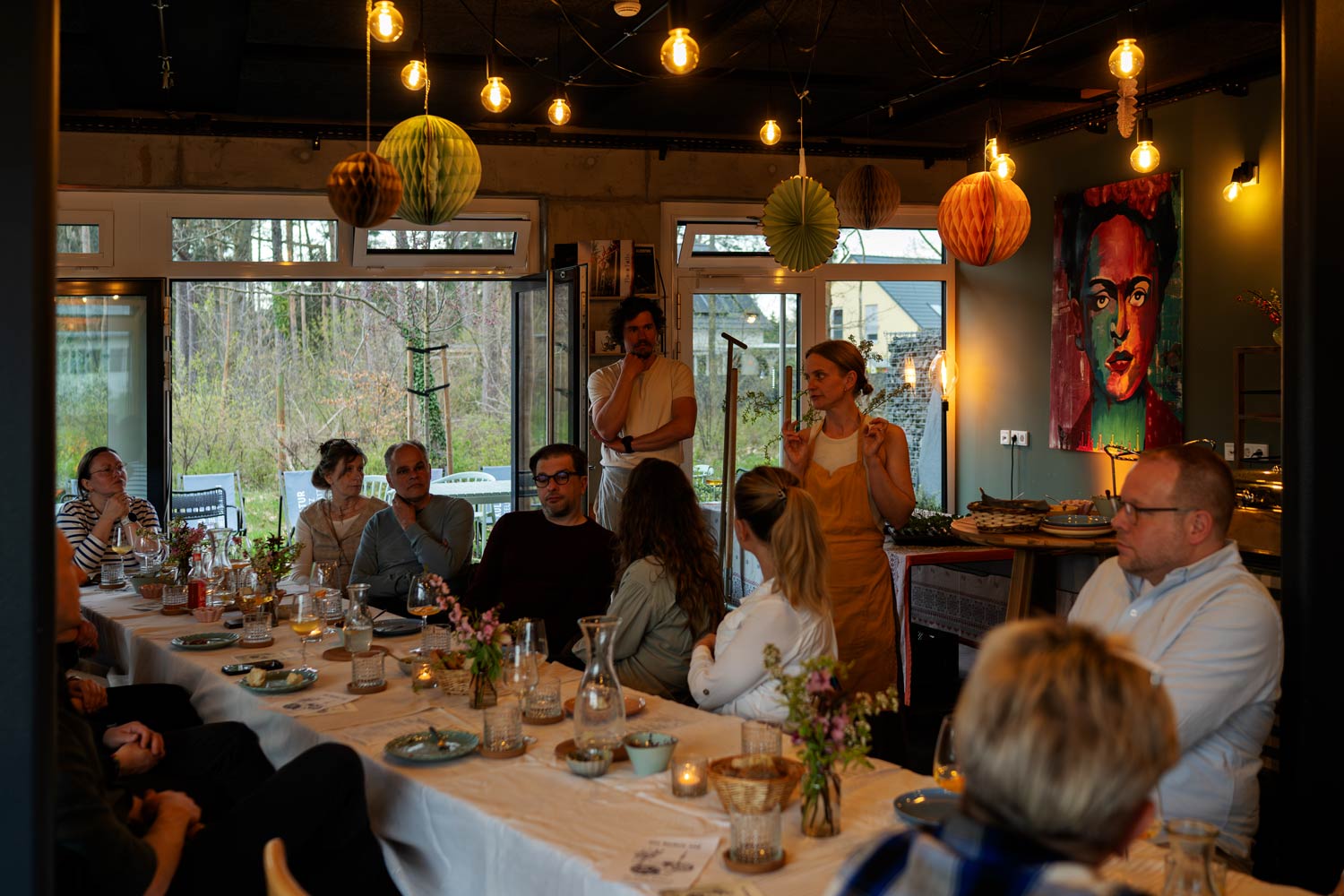 Borkheide, Glindow. Was ist zuerst da, das Rezept oder die Zutaten? Richtig spannend wird es, wenn der Ausgang nicht der Kühlschrank, sondern das Feld ist. Genau damit begeisterten Sonja und Jim Reifferscheid (Von Hand in Glindow) und die Geschwister Franziska Schwitalla-De Jonge und Johannes Schwitalla (Waldraum in Borkheide) am Samstagabend Akteurinnen und Akteure der Region. Es ist der Start in ein ambitioniertes Farm-to-Table-Projekt (Vom Feld auf den Tisch), von dem sich jede und jeder inspirieren lassen kann.