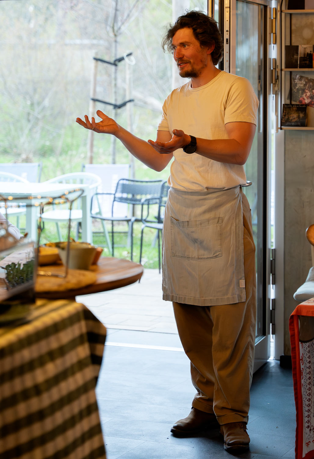 Einer der Gäste war Daniel Sebastian Menzel, Geschäftsführer des Tourismusverbands Fläming e.V., der gleichermaßen dienstlich wie privat teilnahm. Beruflich begrüßte er, dass in dem Farm-to-Table-Konzept regionale Wertschöpfungsketten und Wirtschaftskreisläufe sichtbar werden. Am spannendsten ist für ihn, dass „man hier Geschichten erzählt und Zusammenhänge erklärt bekommt sowie für eine nachhaltig arbeitende Region sensibilisiert wird“.