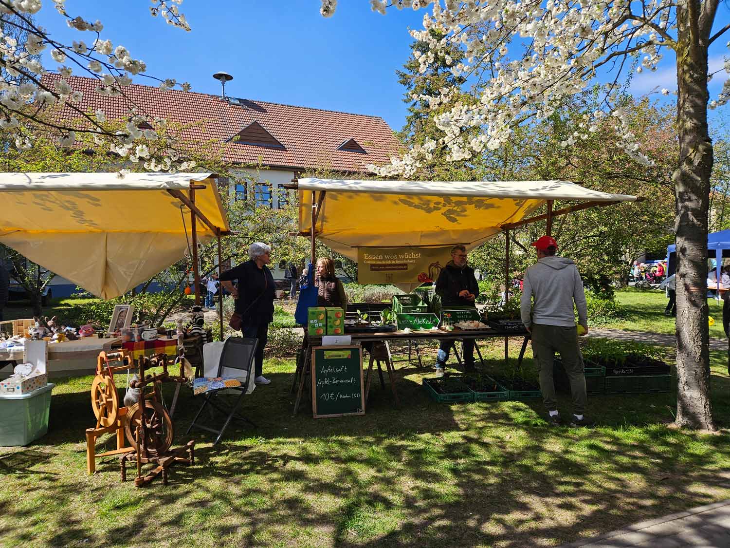 Amt Brück. Zum inzwischen elften Mal veranstalteten am Samstag Nachmittag, dem 25. April 2026, der Tourismusverein Zauche-Fläming (TZF) und das Amt Brück ihr alljährliches Frühlingsfest. Immer am letzten Aprilsamstag findet es abwechselnd in den Orten des Amtes und der Stadt Brück statt. Diesmal wieder im Amtspark in Brück unter den noch blühenden Obstbäumen. Allerdings war auch hierbei der Klimawandel deutlich bemerkbar, vor zehn Jahren standen die Bäume noch in voller, weißer Blüte, jetzt waren sie schon kurz davor zu verwelken.